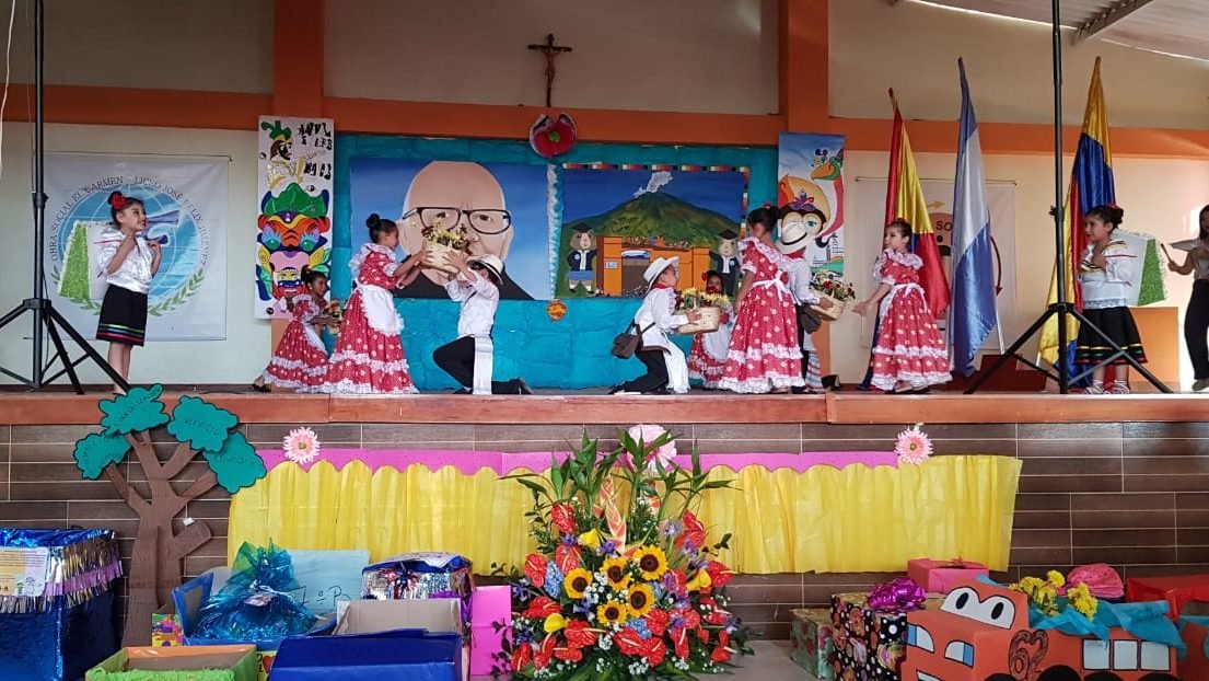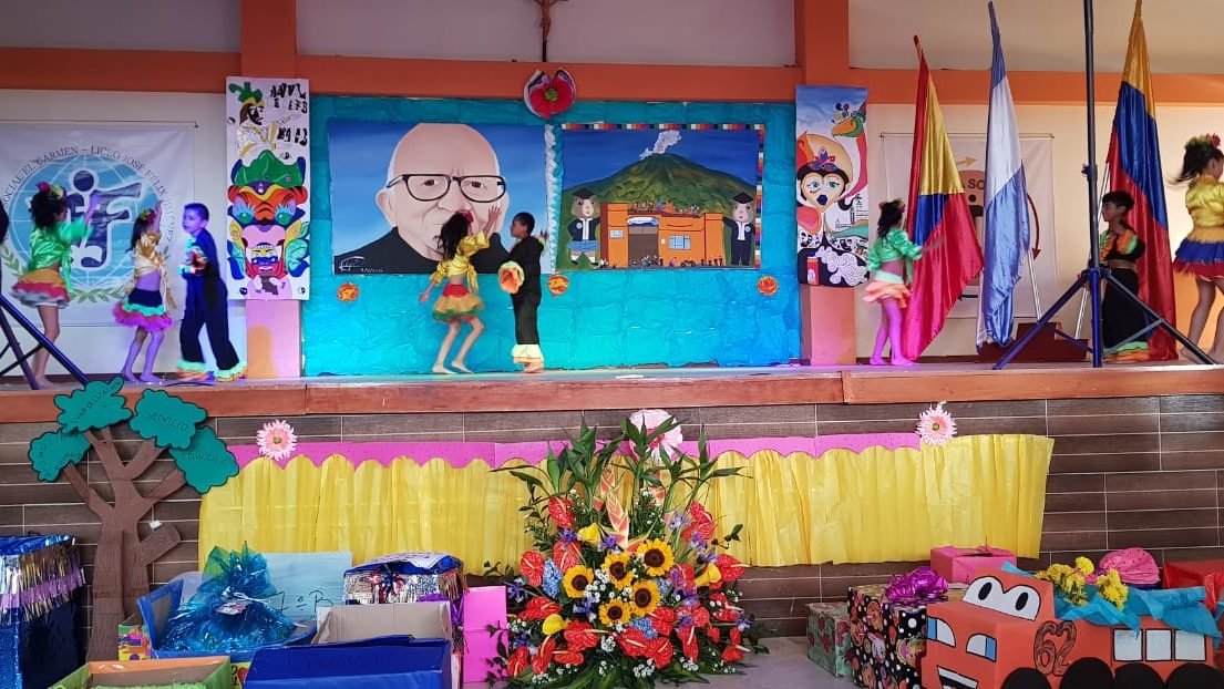 Decoración principal de fiestas Institucionales onomástico 2018 donde fue elaborado este trabajo por estudiantes de grado 10 11, y directivos